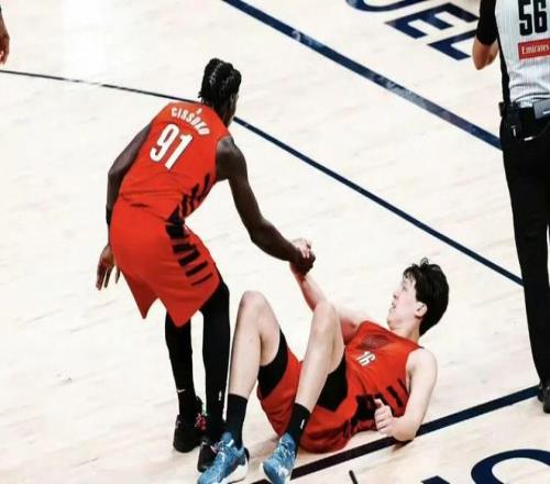 杨瀚森就在一次进攻中,面部遭遇冲击