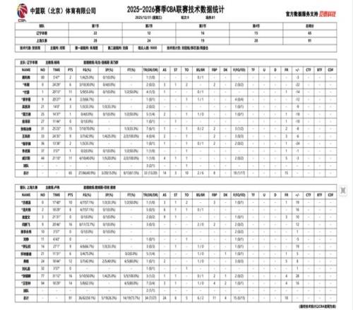 2025-2026赛季CBA常规赛第九轮,辽宁本钢对阵上海久事的比赛于31日晚在辽宁体育馆进行。辽宁本钢在整场比赛中被对手全面压制,最终在主场以65:91完败给上海久事。