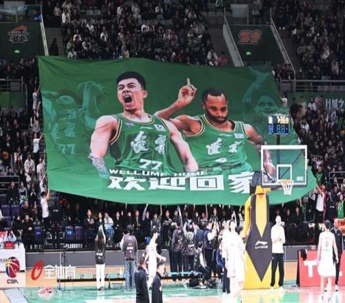 在视频结束的瞬间,北区看台的中间位置赫然出现了印有效力辽篮时期张镇麟和弗格形象的巨幅TIFO,全场爆发出一阵热烈的掌声和欢呼声,欢迎两位老朋友张镇麟、弗格回家!